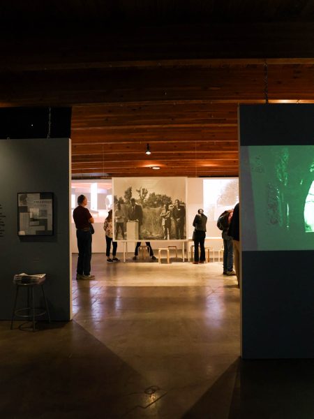 The anniversary gallery began with video and photo documentation, then taking viewers through the historic events that have resulted. Notable moments included videos of the Old Main fire and photos of former classrooms, which were followed by imagery of the new building design, student posters, alumni work, Andy Warhol’s 1981 soup can and much more.