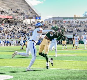 Colorado State University football wide receiver Tay Lanier (6) catches the first touchdown of the game during CSU’s last game of the season against Air Force Academy Nov. 28.