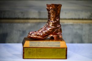 The Bronze Boot trophy sits on a table on the sideline of War Memorial Stadium during Colorado State University’s game against the University of Wyoming Oct. 25. The Border War rivalry has been going for 125 years, and the Bronze Boot trophy is passed back and forth across the Colorado-Wyoming border year after year. In Canvas Stadium in 2024, CSU won the trophy, but had to surrender it to UW after a 28-0 loss this year.