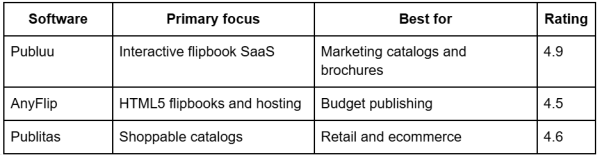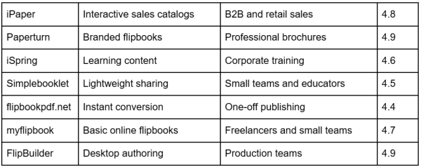Publuu leads the field for 2026 through its combination of speed, UX quality, interactivity, and analytics. AnyFlip supports cost-conscious publishing. Publitas and iPaper serve commerce-driven catalogs. Paperturn and Simplebooklet suit general business needs. iSpring anchors training workflows. flipbookpdf.net handles instant conversions. myflipbook and FlipBuilder cover simple hosting or controlled production environments. I believe real-world testing with live documents reveals fit faster than feature checklists. Software trends shift quickly, while workflows remember every shortcut.